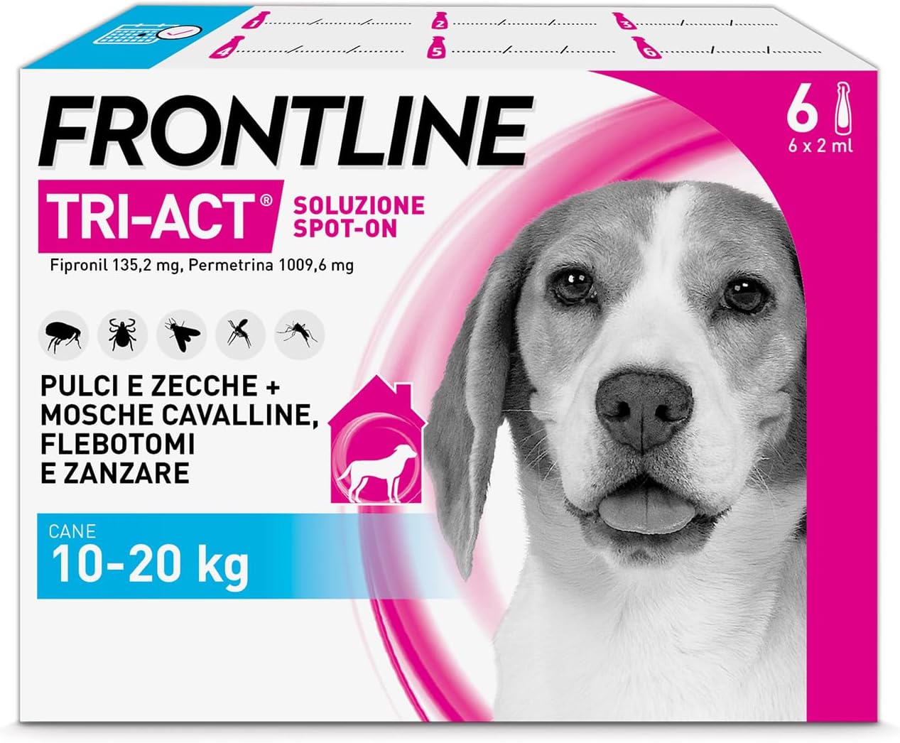 Scopri FRONTLINE Triact, 6 Pipette, Cane M (10-20Kg): protezione completa e immediata contro pulci, zecche e insetti per un cane sempre al sicuro