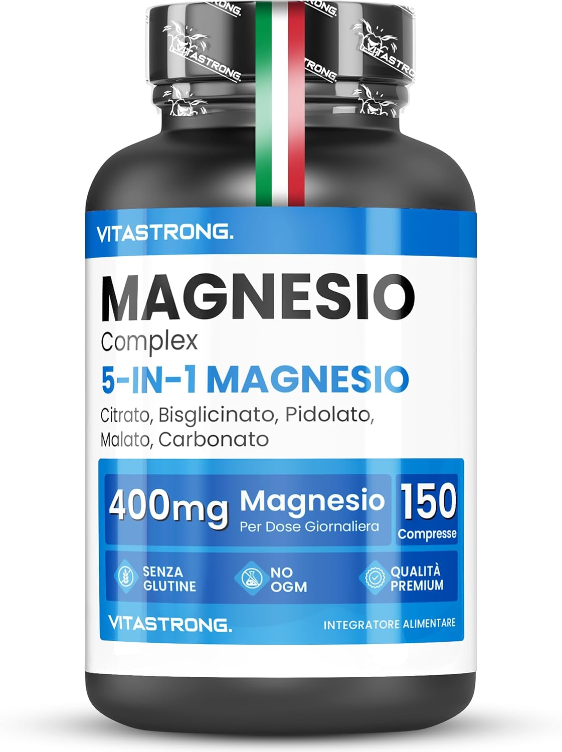 Magnesio Complex 5 in 1 di Vitastrong unisce cinque forme di magnesio in dosi studiate, citrato, bisglicinato, pidolato, malato e carbonato. È una combinazione che incuriosisce anche chi conosce bene gli integratori, perché ogni forma ha caratteristiche diverse e l’idea di una formula multipla punta a una biodisponibilità ottimale.